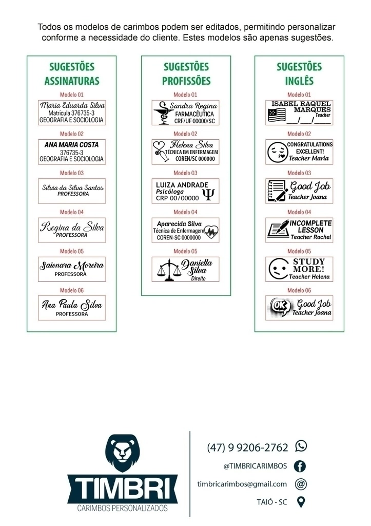 Encontre agora mesmo os carimbos ideais para você, os mais diversos modelos.