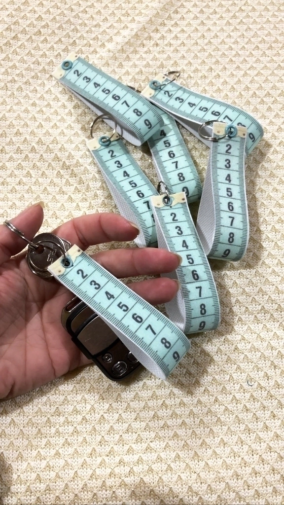 essa linda peça de chaveiro em forma de fita métrica, Confeccionada em nylon 600 dublada ou nylon cordoba