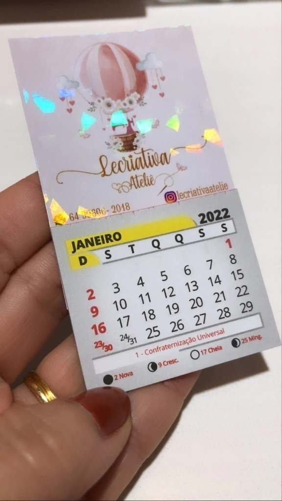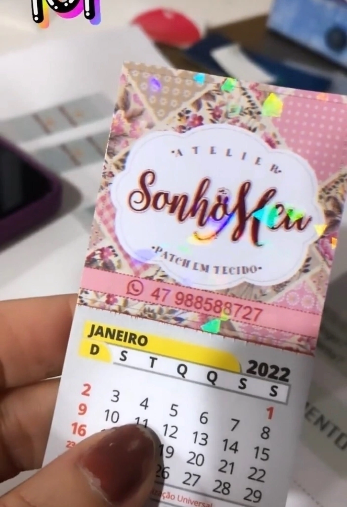 calendario ima de geladeira tamanhp 10x5cm e você escolhe com brilho normal ou o luxo do brilho holográfico!